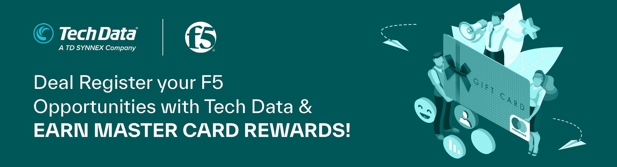 For a limited time, Tech Data is offering F5 Partners the opportunity to earn Digital Master Card Rewards for approved F5 Deal Registrations through Tech Data!